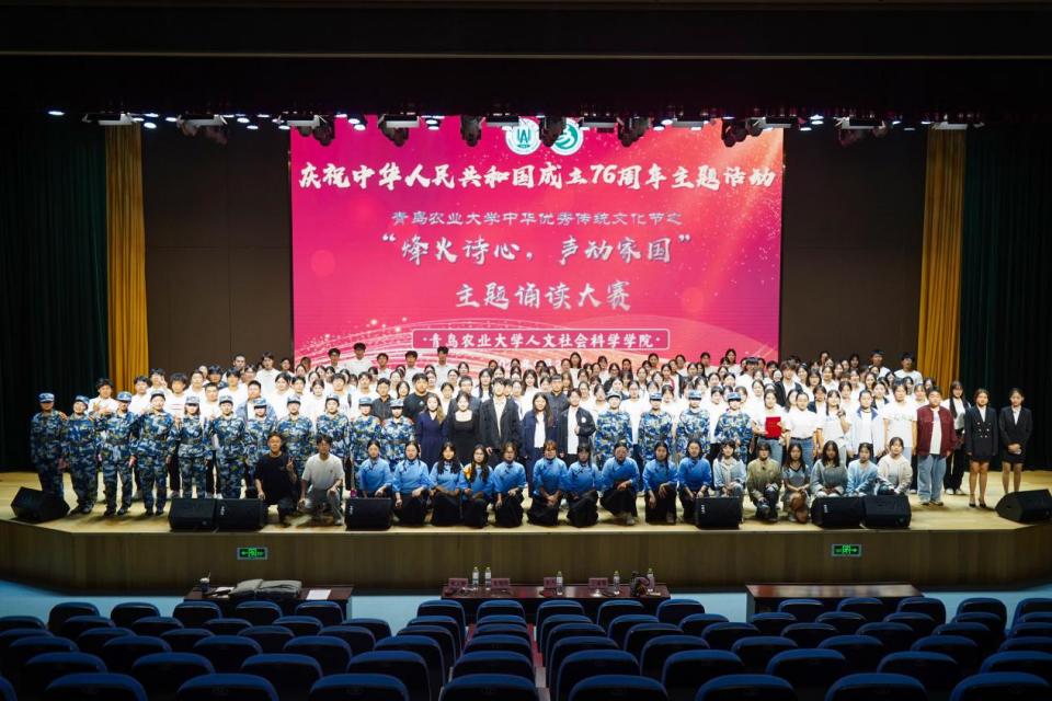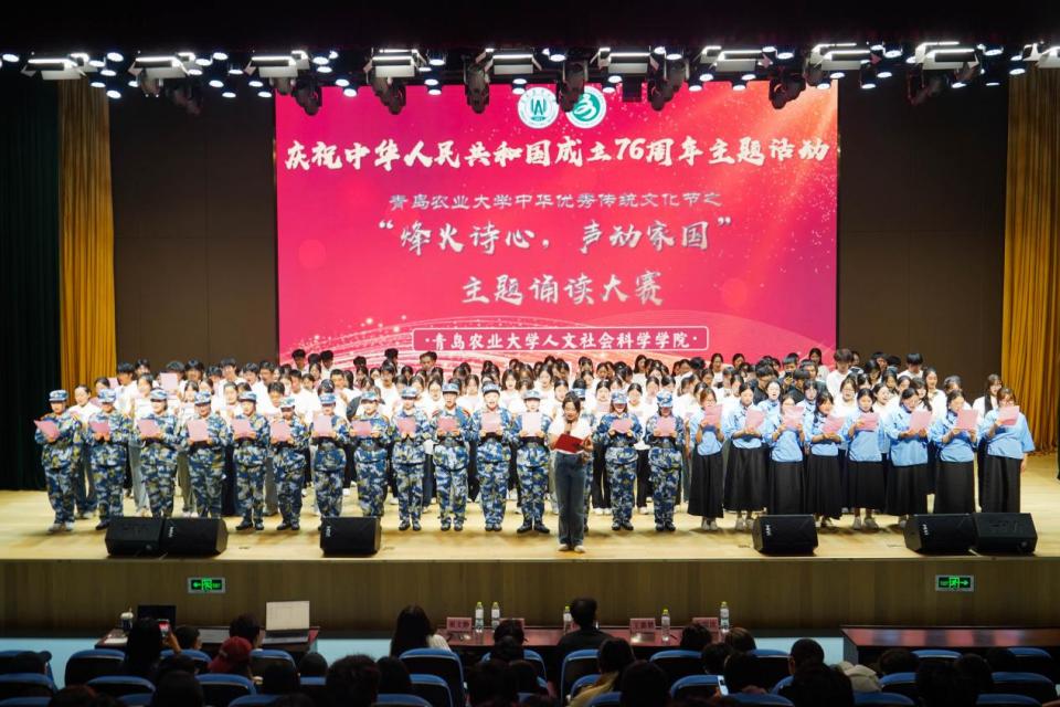 比赛现场,各参赛团队围绕主题,以声传情,以赤诚诠释家国情怀,将“烽火”记忆与青春担当融入诵读,以激昂的语调回溯先辈们的坚守岁月,传递对历史的深切致敬,用温情有力的表达诉说青年对家国重任的承接,将文化传承与时代使命紧紧相连。各队伍精心打磨演绎,让家国情怀的精神内核在舞台上鲜活绽放,深深触动了在场所有师生。12支队伍朗诵结束后,全体参赛人员共同登台合诵,声韵铿锵,振奋人心,赢得全场的热烈掌声。最终,大赛评选出一等奖3名、二等奖4名、三等奖5名。