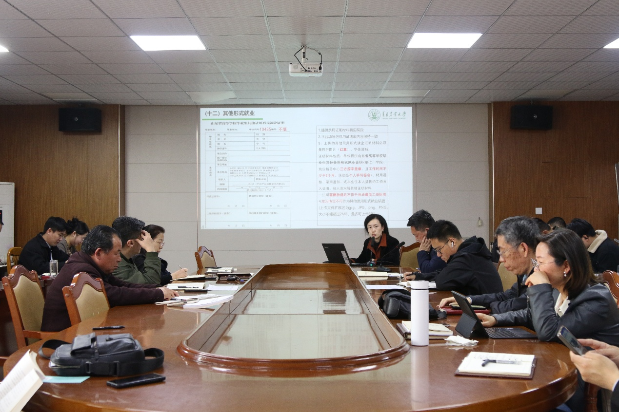 姜鲁平就学院毕业生就业工作提出三点建议:一是引导学生树立正确就业观,帮助其理性认识就业形势,确立“先就业后择业”的务实导向;二是强化岗位对接与精准帮扶,积极拓展用人单位资源,积极为同学们提供就业信息,了解同学们现实就业状态,建档重点帮扶,切实提升就业服务的针对性与实效性;三是建立健全辅导员、班主任与论文指导教师协同联动的跟踪帮扶机制,及时共享动态就业信息,持续加强未就业学生的动态跟踪与分类指导。当前正值毕业生求职择业关键期,全院教职工应各司其职、密切协作,进一步扎实做好就业指导,牵线搭桥,岗位对接帮扶,用心用情,以更务实的作风为毕业生保驾护航,助力每一位毕业生顺利就业,圆梦职场。