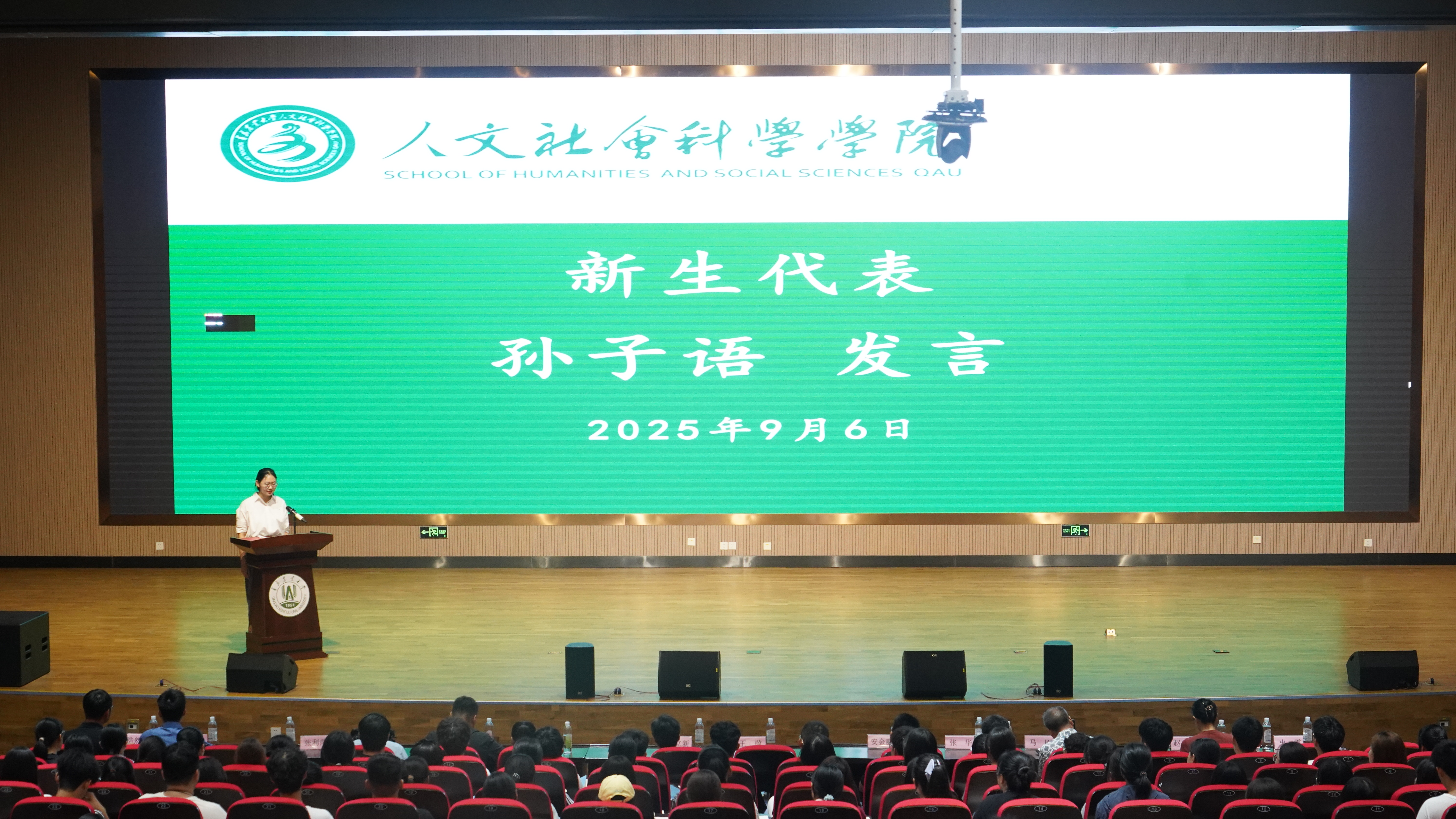新生代表孙子语在会上发言,号召同学们以昂扬姿态开启大学征程,书写青春华章。